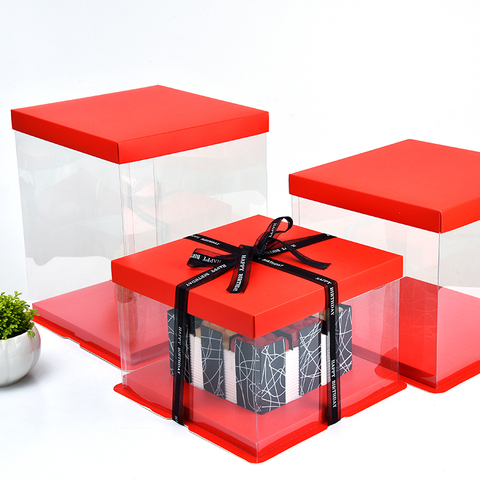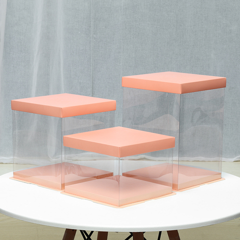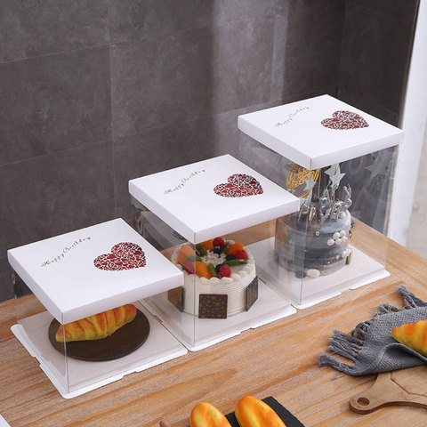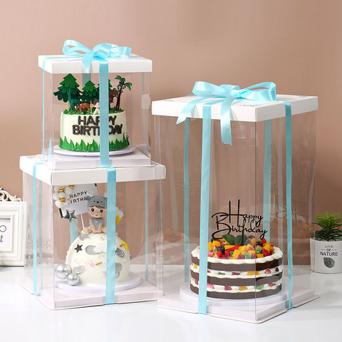 Şeffaf kek kutusu 6/8/10/12 inç tek çift katmanlı yükseklik degrade doğum günü pastası kutusu ambalaj kutusu logo